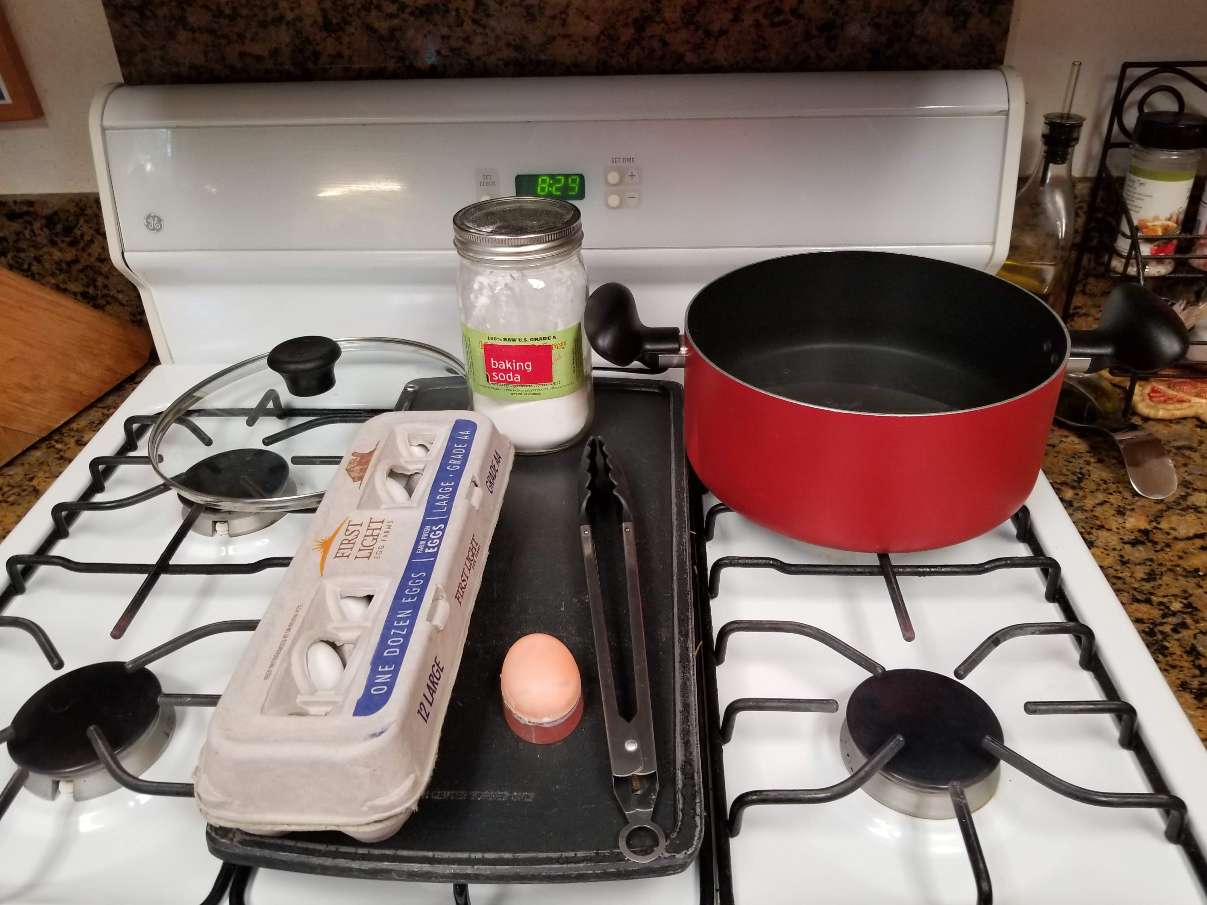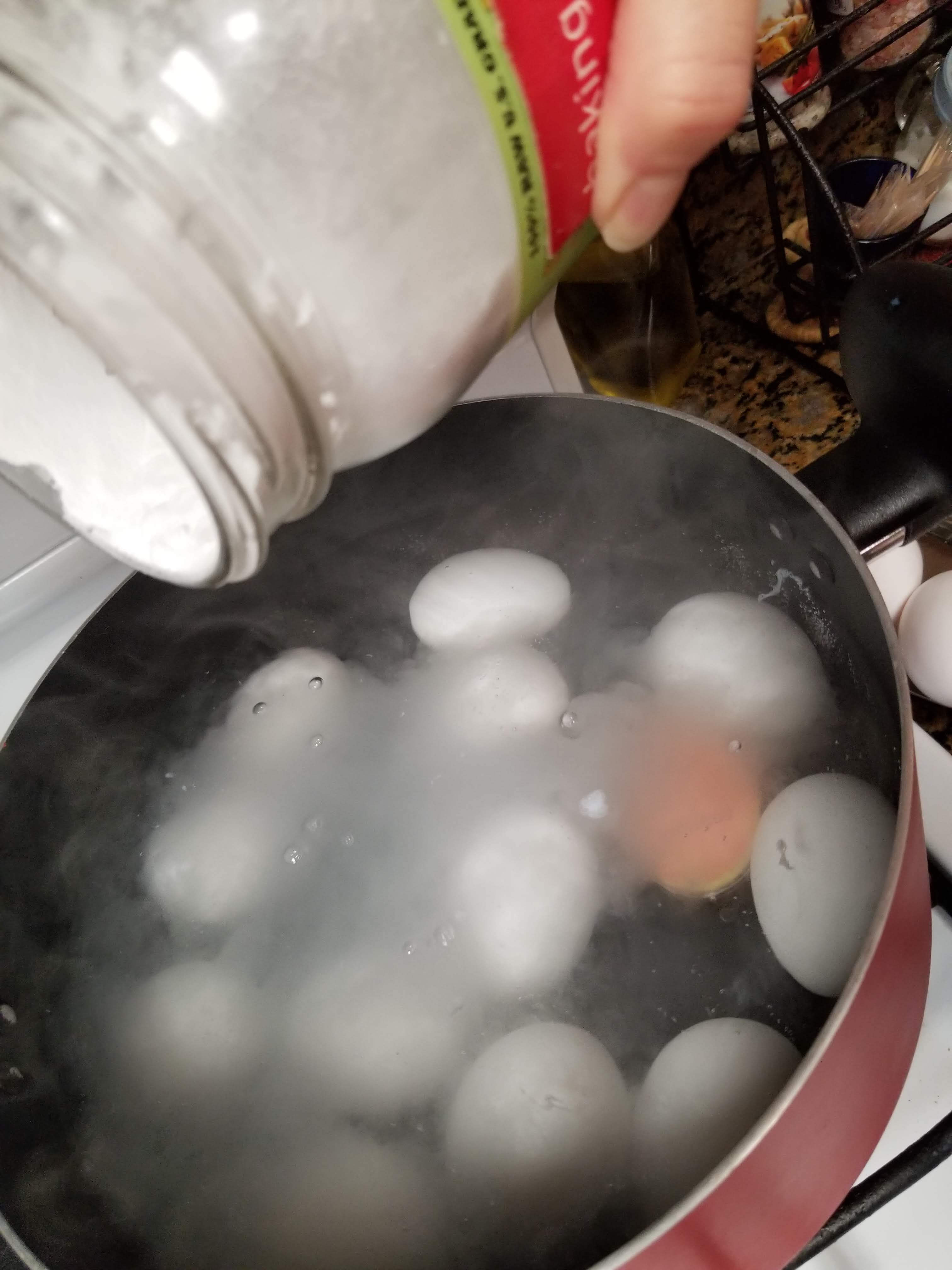 4. After the eggs are placed in the water you will want to add in Baking Soda.